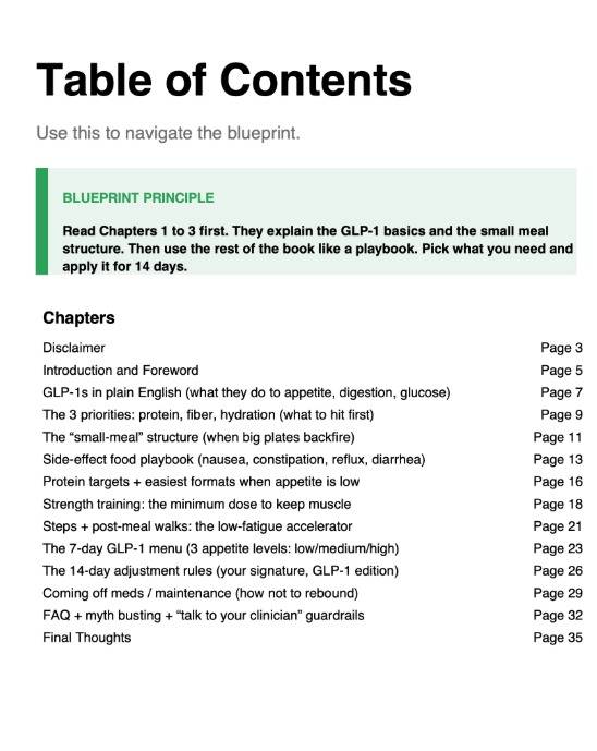 I kept accidentally under-eating because I just didn’t feel hungry. I’d look up and realize it was mid-afternoon and I’d barely eaten anything, and then I’d start feeling awful later — tired, a bit shaky, sometimes even more nauseous. The weird part was I couldn’t always tell in the moment that I was heading that way, because my normal “I’m hungry” signals just weren’t there.This companion guide honestly helped a lot because it made things feel simple again. It’s not trying to turn your life into a strict plan — it just gives you realistic options and a way to stay on track when your appetite is all over the place. I stopped doing the whole “I’ll eat later” thing and then paying for it. Now I’ve got a few go-to meals/snacks that work even on low-appetite days, and I’m way more consistent without stressing about it. Daniel